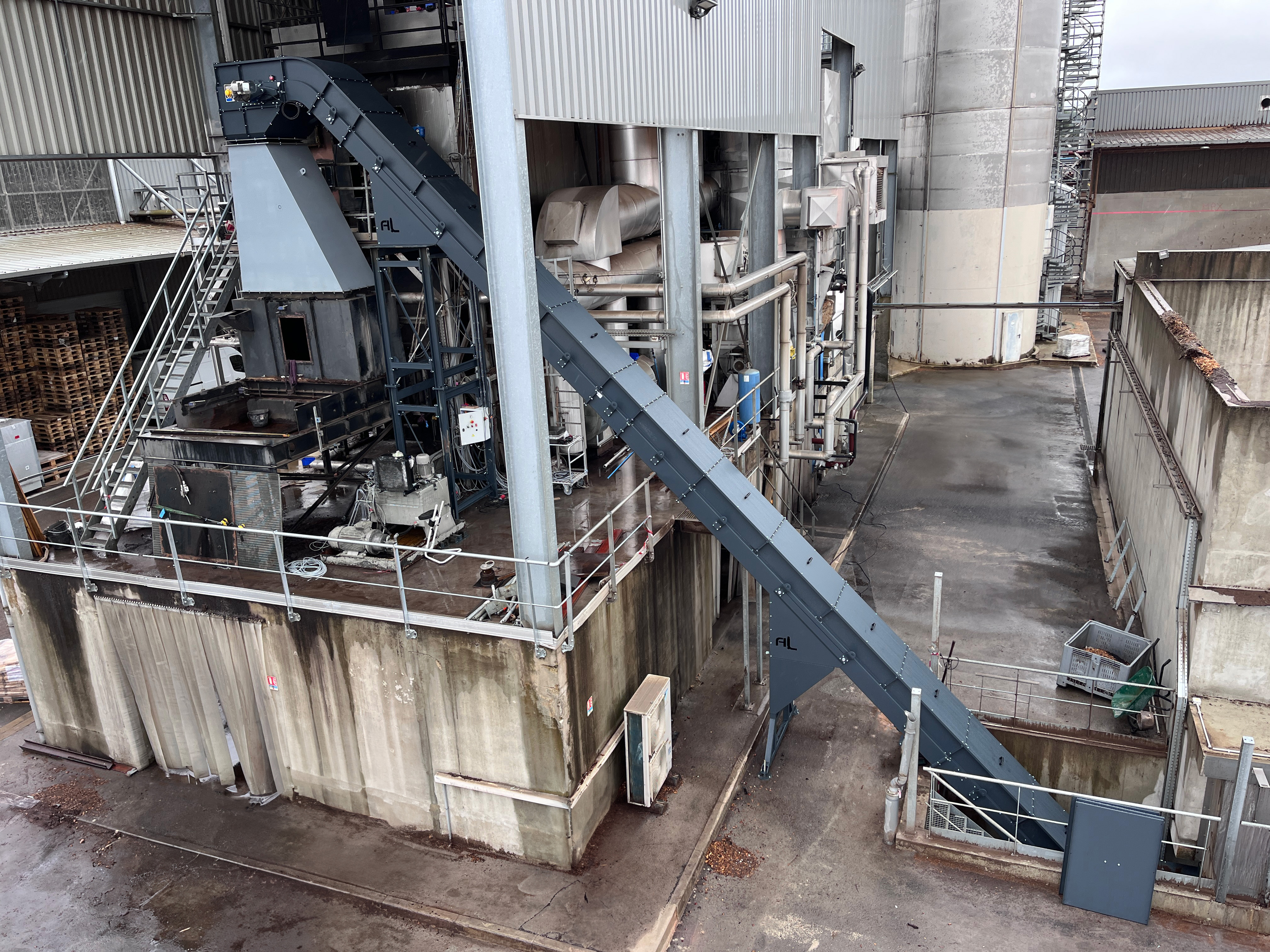 AL Industrie conçoit, fabrique et installe des solutions de convoyage Biomasse, convoyeurs, trémies de stockage, trémies doseuses, Toploader, bennes à fond mouvant, silo de raclage automatique.