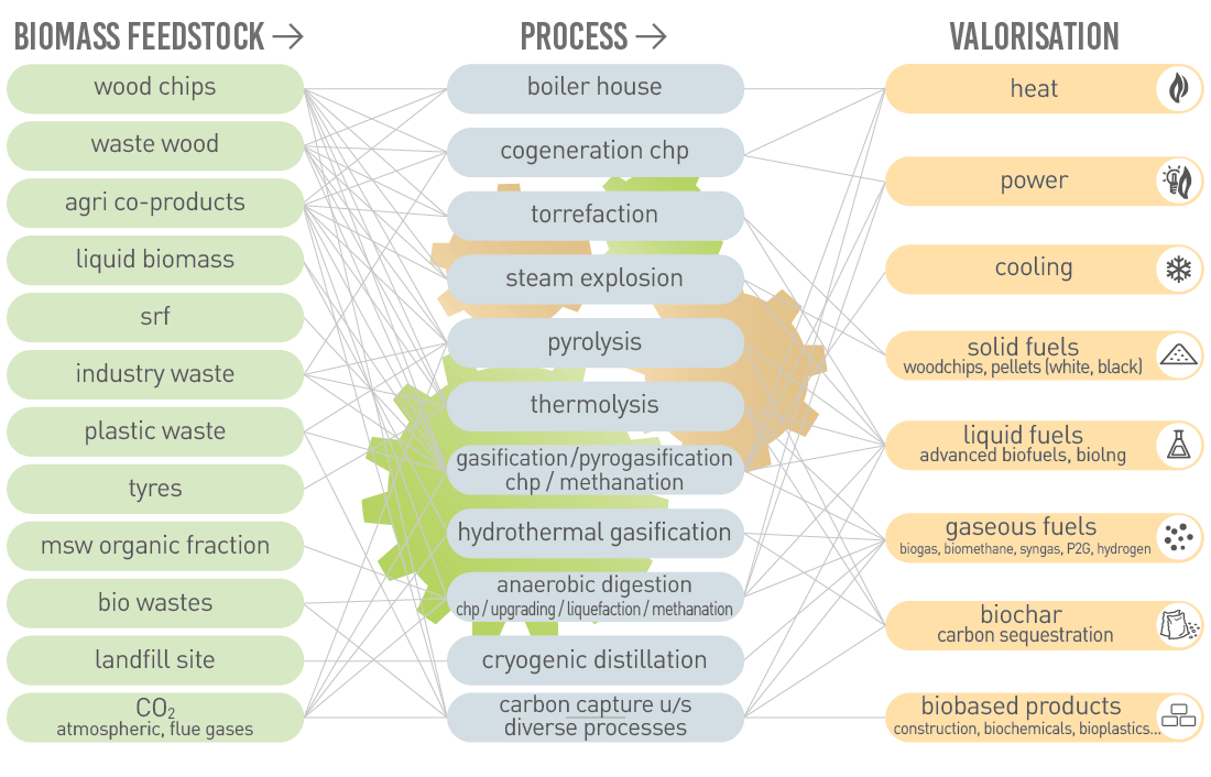 A myriad of sustainable biomass resources are available in the biosphere which, together with carbon capture and utilisation, and through multiple process pathways lead to clean renewable energy or fuels in gaseous, liquid and solid forms as well as to biobased products for daily use … welcome to the world of Bio360 !