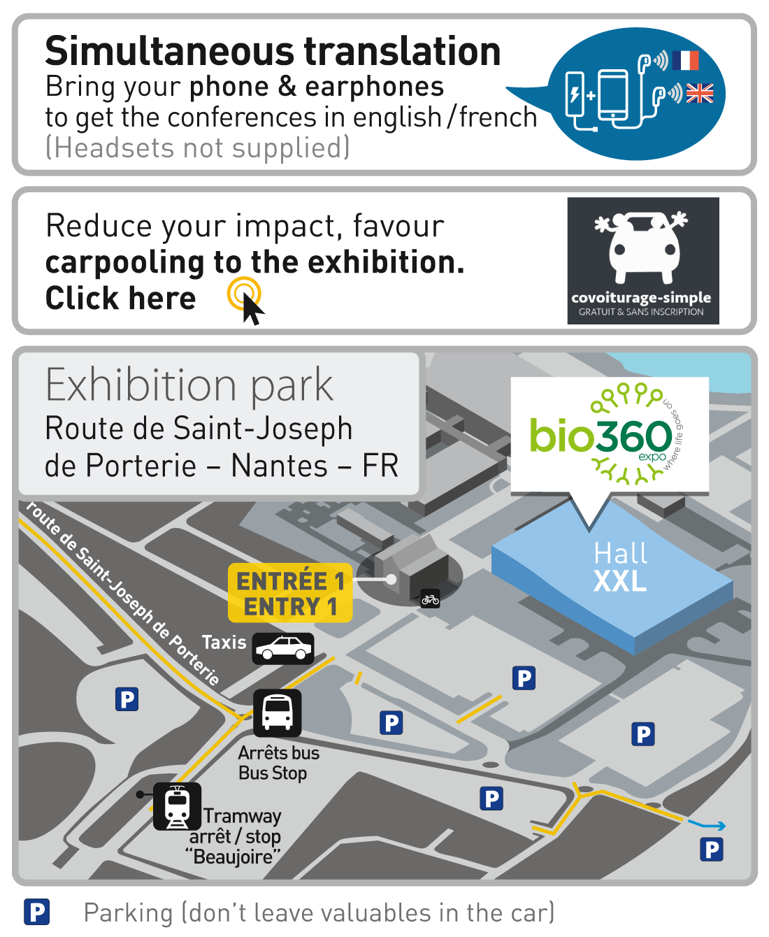 Bio360 Europe will take place at ExpoNantes le Parc des Expositions in Hall XXL.